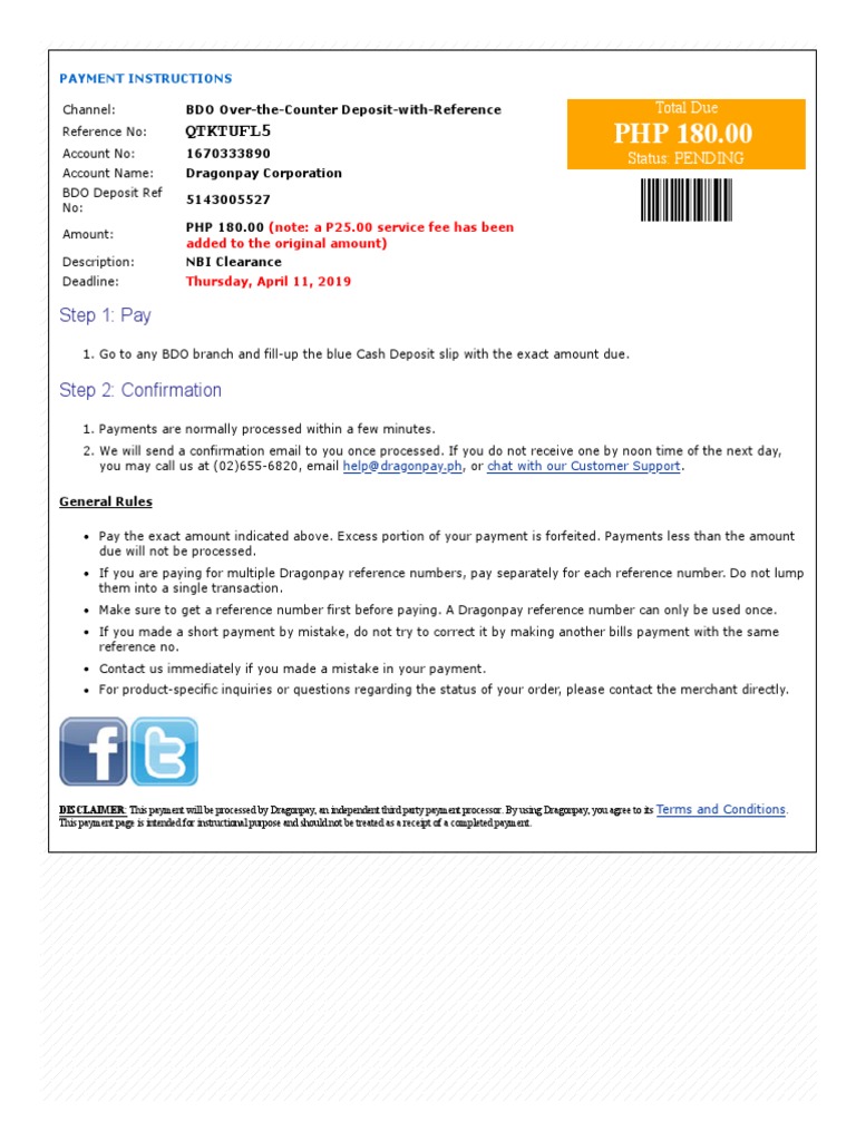 Over the counter (otc) deposit payment at any bdo branch get a copy of bdo deposit slip.
