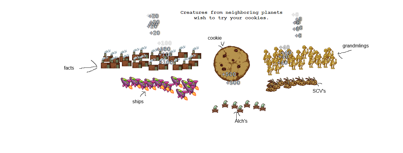 The grandmatriarchs are considered to be the main antagonists of the game. They were added on august 31st, 2013, in version 1.031. Start with tedious manual labor, move on to farms and factories and take over the whole universe to realize your insane ambitions. Bake as many cookies as humanly possible. Then you get the cookies.